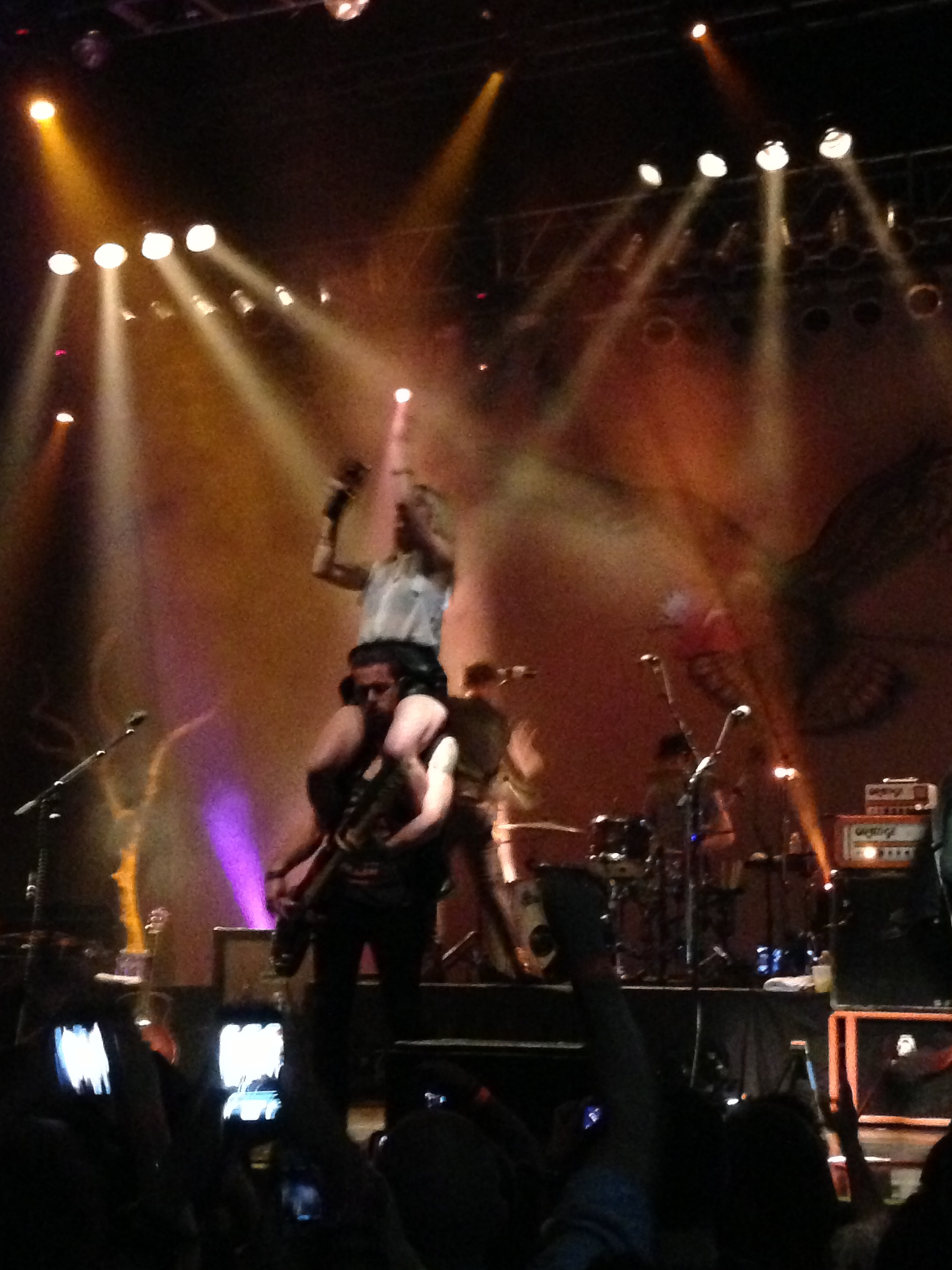 Mikel even climbed up on some second story lighting. Unfortunately it was almost impossible to get a clear picture, but he seriously treated the place like it was a jungle gym, all the while still singing his songs like it wasn’t any effort at all. Per the usual, Mikel also embarrassed Steven repeatedly. Towards the end of the show he even said the following: