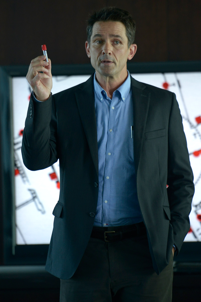 Helix borrows a number of familiar elements from the genre playbook, but manages to recombine them in a way that is intriguing and mostly fresh. Set in a massive and isolated private research facility in the Arctic, the series initially seems to borrow from John Carpenter’s The Thing, with doses of Resident Evil, Alien, and Battlestar Galactica. A viral pathogen has infected three scientists at the base, killing two of them, prompting someone on the base to request assistance from the CDC in the form of Dr. Alan Farragut (Billy Campbell) and his team. Alan’s brother Peter (Neil Napier) is patient zero, adding a personal dimension to the outbreak that is exacerbated by the presence of Alan’s ex-wife Julia Walker (Kyra Zagorsky) on the CDC team. Rounding out the main characters are Dr. Hiroshi Hatake (Hiroyuki Sanada), the stereotypically mysterious leader of the base, Major Sergio Balleseros (Mark Ghanimé), a US Army attaché to the CDC team who is also hiding ulterior motives, and Dr. Sarah Jordan (Jordan Hayes), Alan’s young and brilliant assistant.