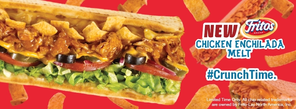 But as a slightly more health-conscious adult, I’ve kicked the habit of packing a bag of chips into my subs. While Subway will undoubtedly never be able to manually stuff sandwiches with Doritos because of contractual ties between Doritos and Taco Bell, the idea of a Chicken Enchilada crunched up with Fritos piqued my interest quite a bit. So when the opportunity presented itself, I went for it.
