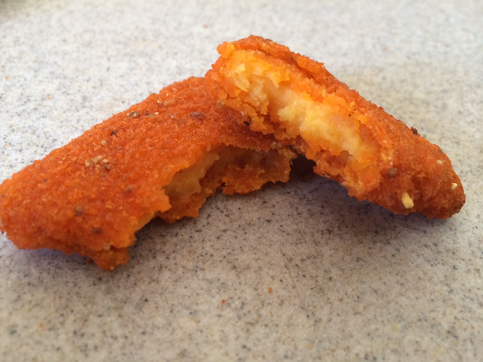 While the cheese was a failure, the breading of the Doritos Loaded was actually pretty good. It has a spice profile that is very similar to mozzarella sticks, but with a slight hint of Doritos dusting. The problem: the flavoring was so light that you might think it was unrelated to Doritos if the name wasn’t plastered all over the box.