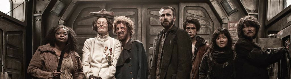 Vaguely riding the wave of success that was Captain America: The Winter Soldier, Snowpiercer stars a more raggedy, bearded Chris Evans. Though he’s leaned out a bit, he still commands a formidable physical presence. Crossover nerds who love both Marvel and Doctor Who will also no doubt rejoice at the presence of John Hurt as a supporting character. They might even be glad to see Jamie Bell if they are nerdy enough to have actually enjoyed Jumper. But this is no superhero movie or lighthearted time traveling adventure. Snowpiercer is a dark, dark beast of a thing.