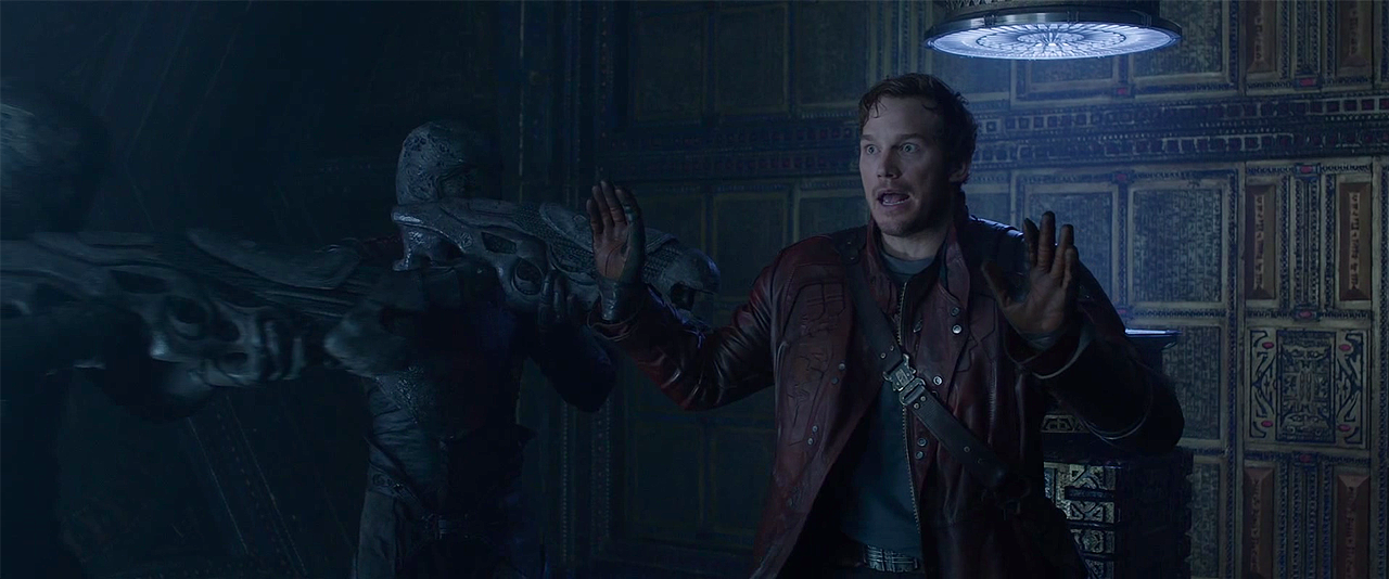 I am not saying that Guardians is some great film of thematic import. It finds meaning within itself to make it rise above the standard fare. Which makes it all the more frustrating when the script falls short of its potential. Too often does Gunn rely on his characters announcing or confessing their formative experiences in moments of heightened emotions. This method of telling rather than showing relies on narrative shorthand above dramatic characterization. This is frustrating because the film is ultimately about broken people from broken places finding peace and purpose in each other. Without a good sense of their psychologies the team’s union is not as strong as it could be. On top of all this, Gunn successfully dramatizes Quill’s psychology throughout the film. His first scene as a child while his mother dies of cancer, his devotion to his walkman, his love of 80s pop culture, and ultimately the genesis of the title Star-Lord all tie together paint a picture of a man separated from his home without purpose or a family. His arc is the most rewarding.